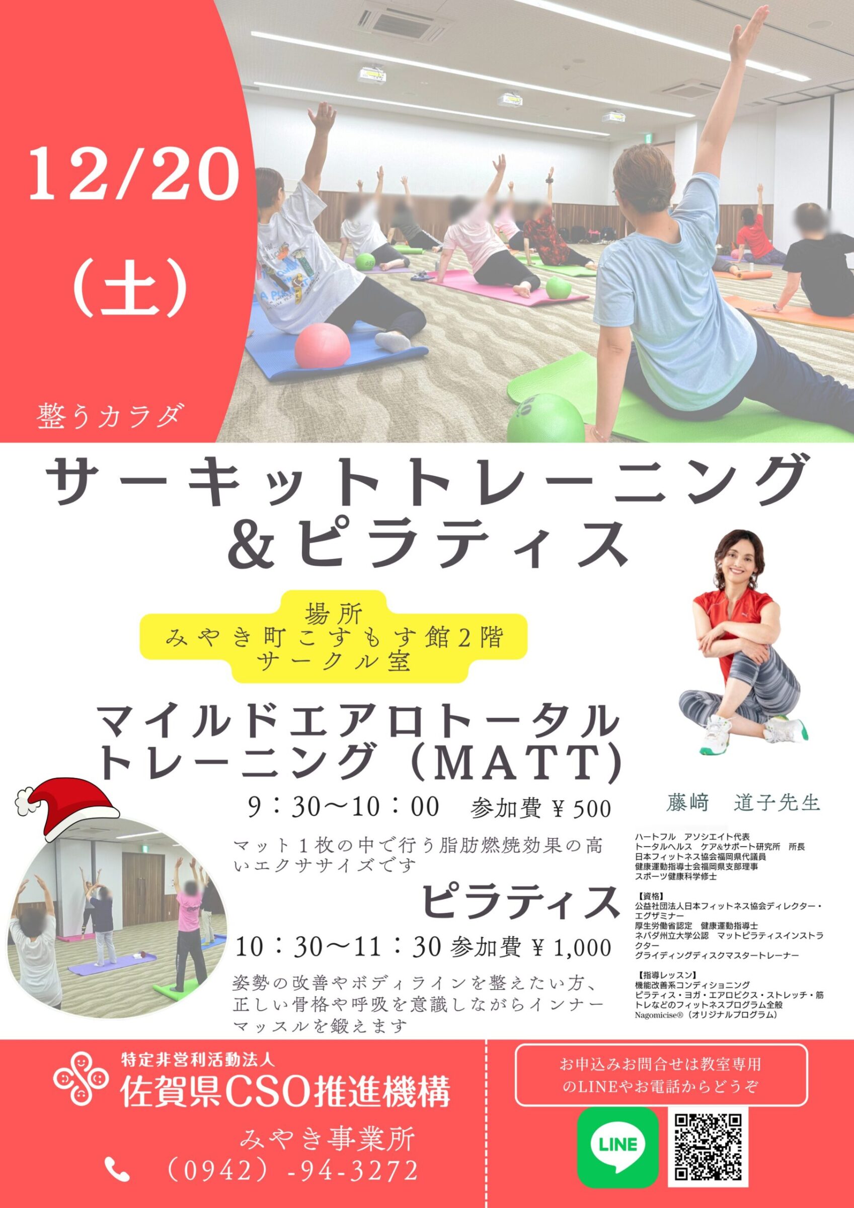 みやき町メディカルコミュニティセンターにて、「サーキットトレーニング(MATT:マイルド エアロ トータル トレーニング)」と「ピラティス」の教室を開催します!