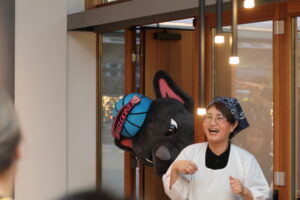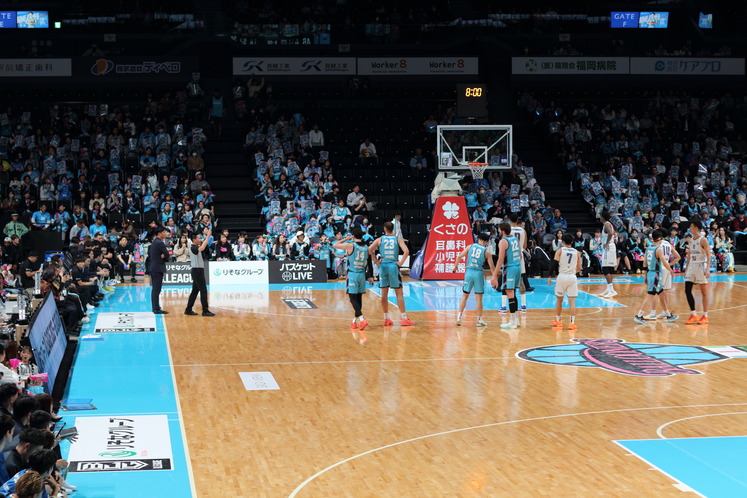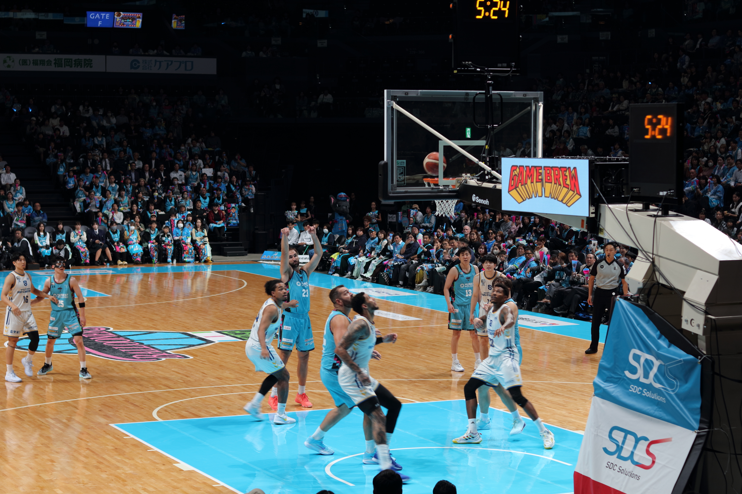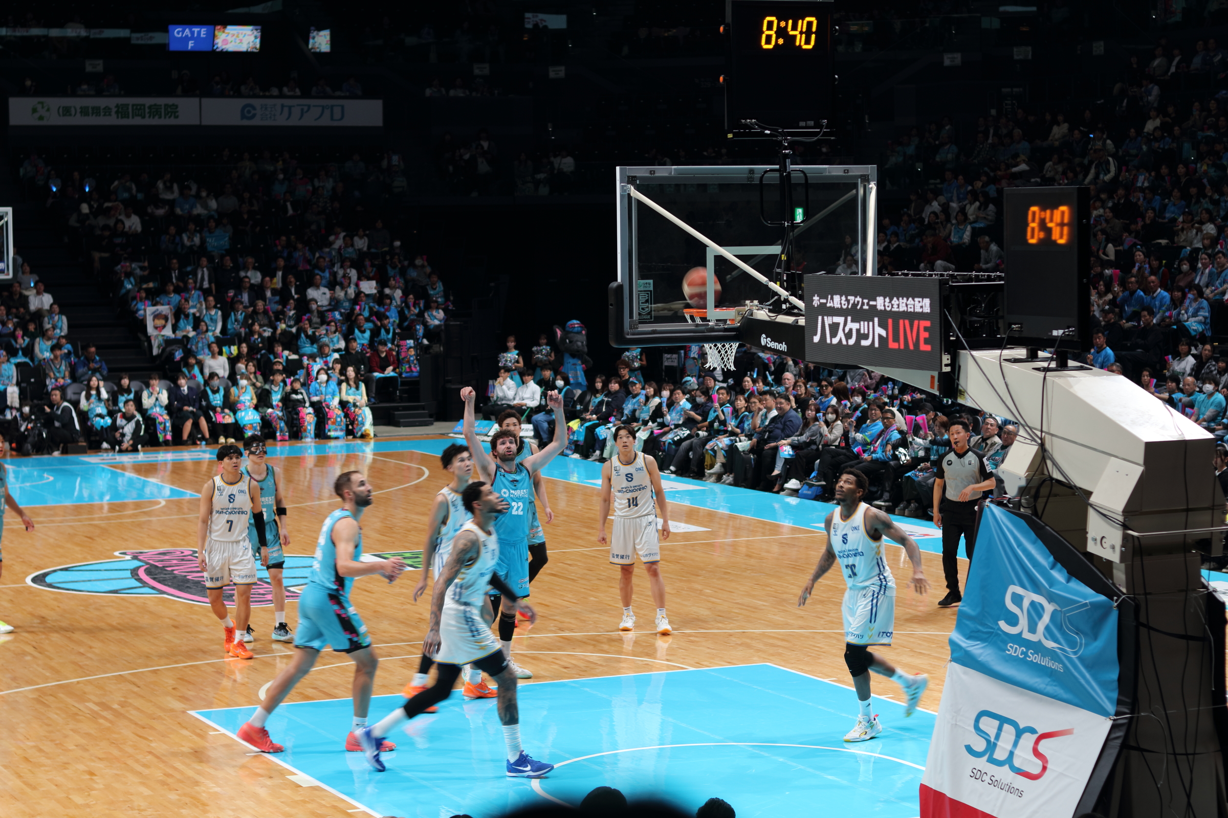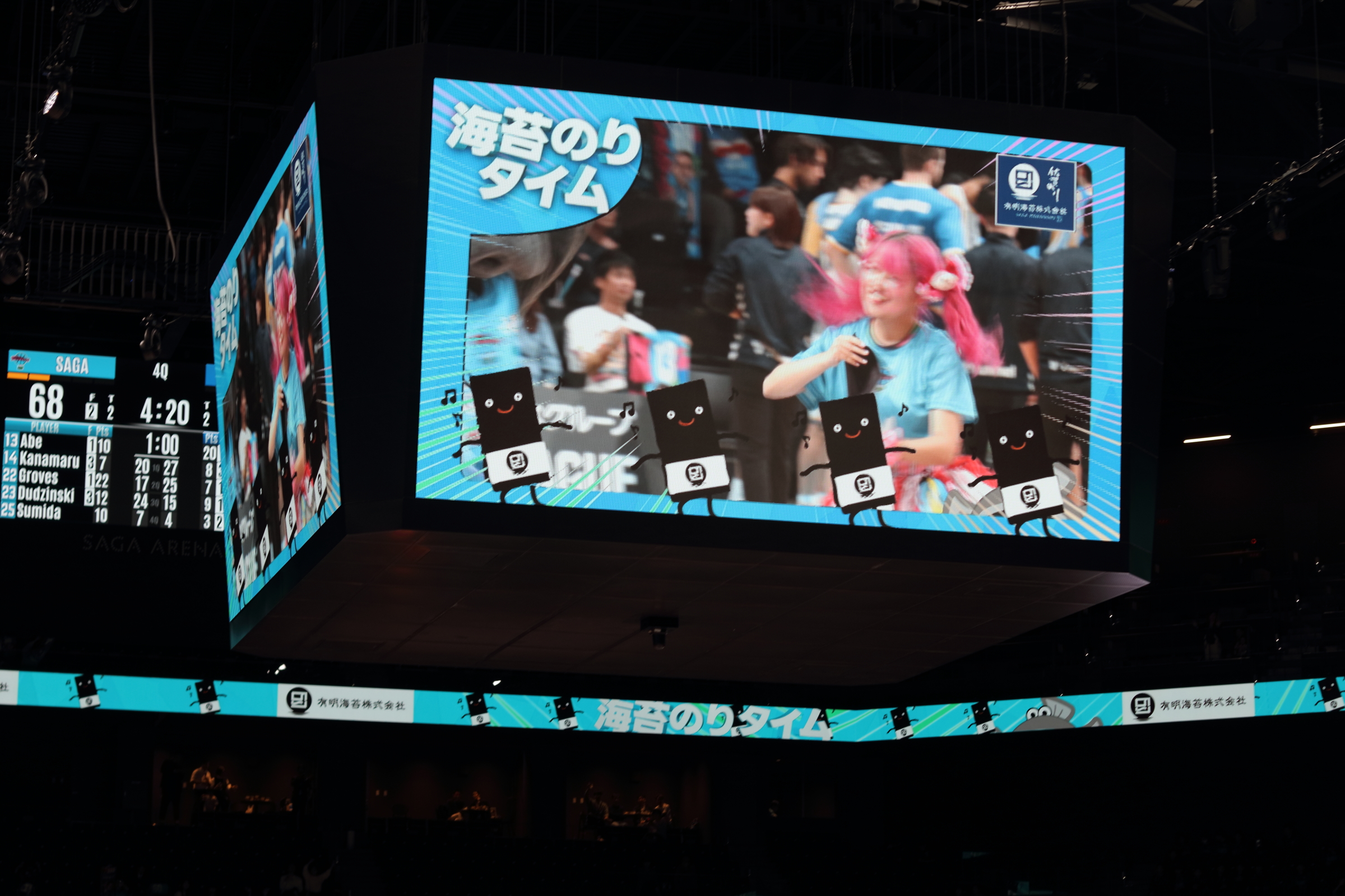 お腹も心も満たされた一行は、SAGAアリーナへ移動し、バルーナーズの応援席へ。試合は序盤からリードを許す苦しい展開となりましたが、子どもたちは最後まで諦めることなく、会場のブースターと一体となって「Go!Go!SAGA!」と大きな声援を送り続けました。