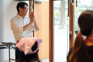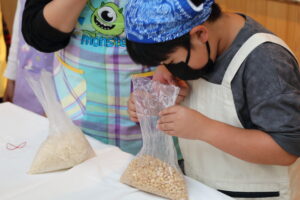 味噌作りワークショップでは講師の丸秀醤油・秀島社長が開口一番に「お味噌って何からできてるか知ってる?」と問いかけられると、子どもたちからは「大豆!」「お米!」「お塩!」と元気な声が上がりました。