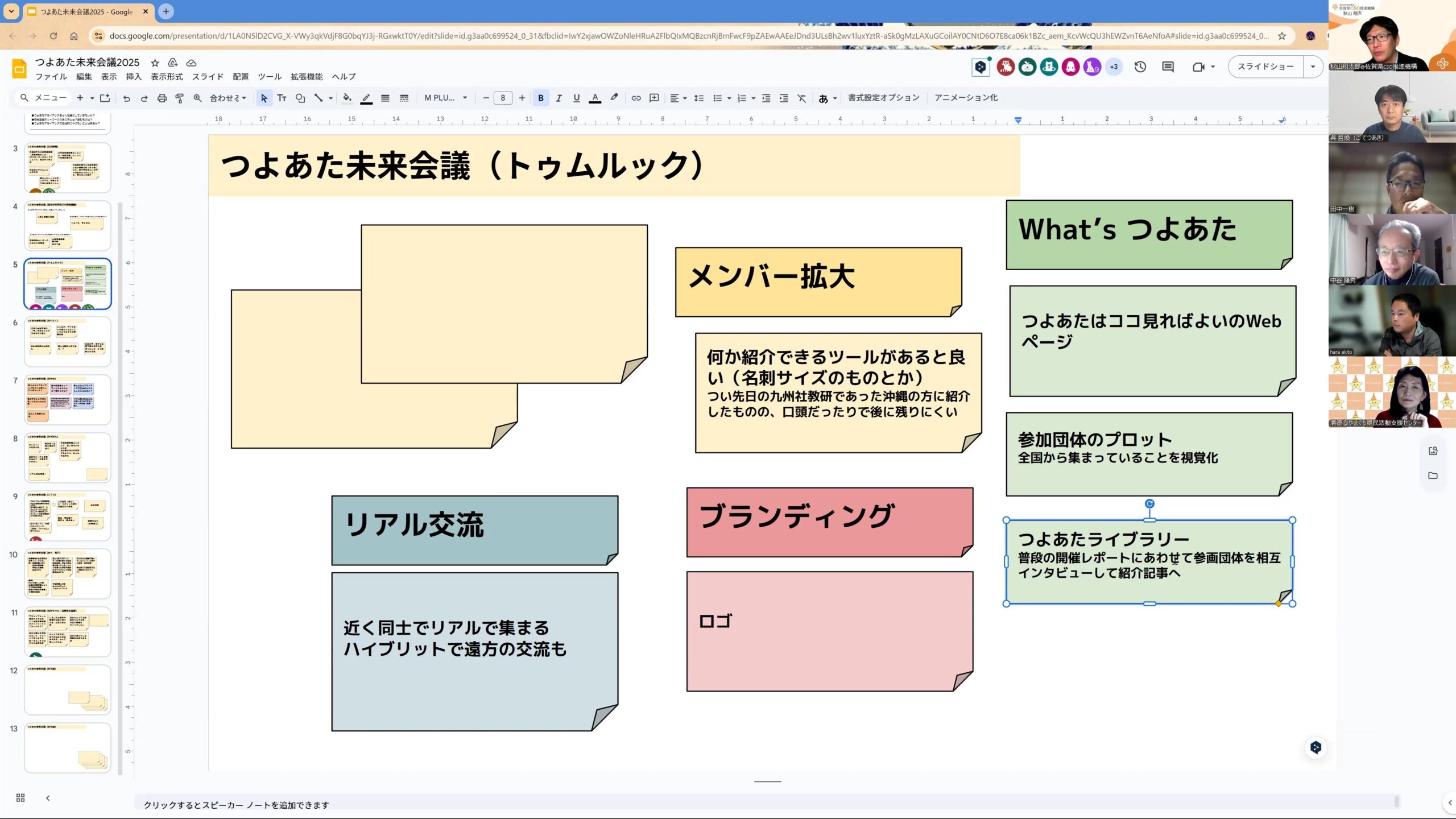 活動が全国に広がる中で、「つよあたアライアンスとは何か」を外部に説明しやすくするためのツール整備についても議論が及びました。