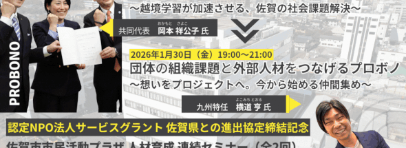 【開催告知】1/16・30(金)佐賀市市民活動プラザ「プロボノ実践連続セミナー(全2回)」(ハイブリッド開催)
