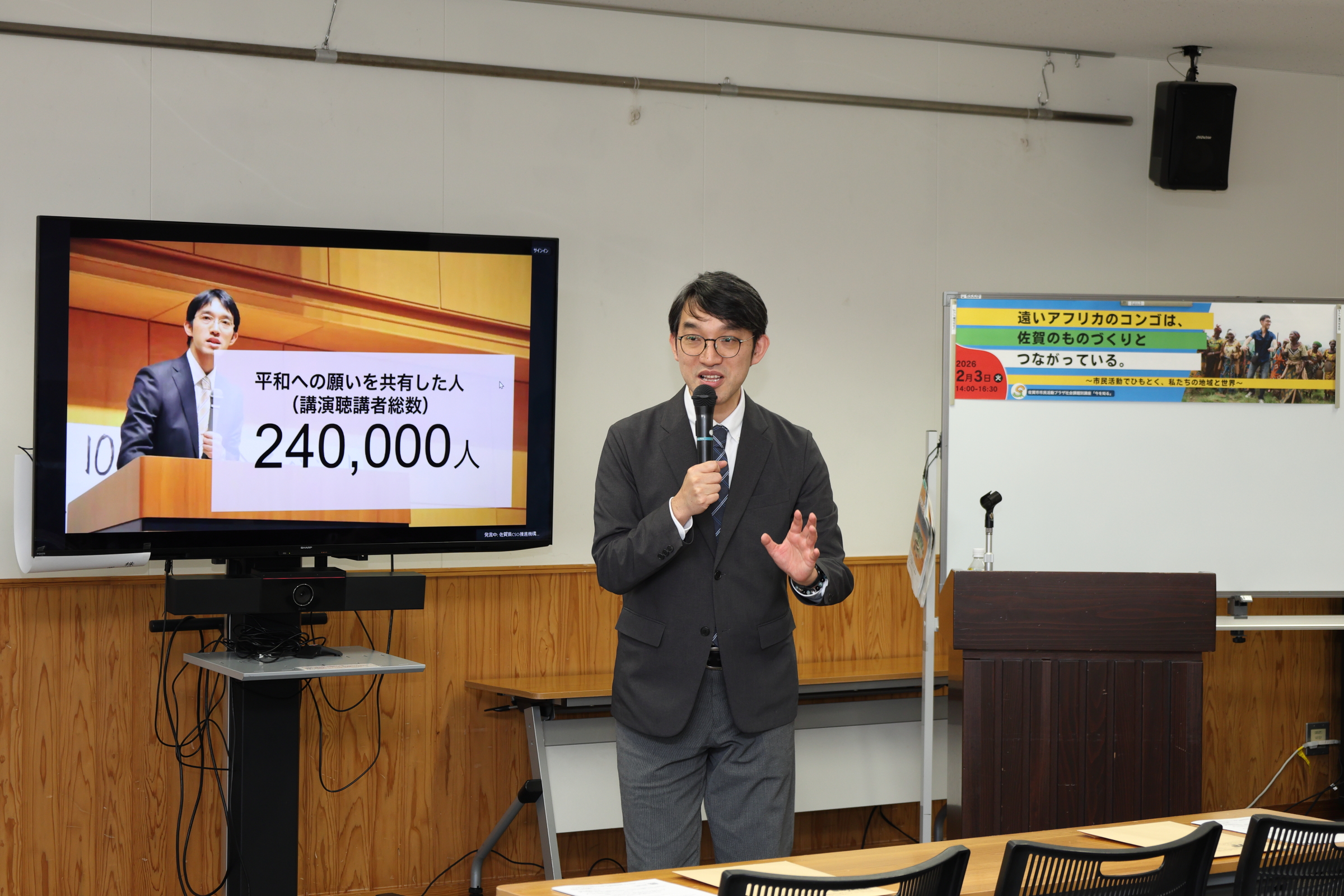 2026年2月3日(火)、佐賀市市民活動プラザ事業部では、今年度最後となる人材育成・社会課題別講座「遠いアフリカのコンゴは、佐賀のものづくりとつながっている。~市民活動でひもとく、私たちの地域と世界~」を開催しました。