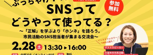 【開催告知】2/28(土)佐賀市市民活動プラザつながる交流会「ぶっちゃけ!!SNSってどうやって使ってる?」(ハイブリッド開催)
