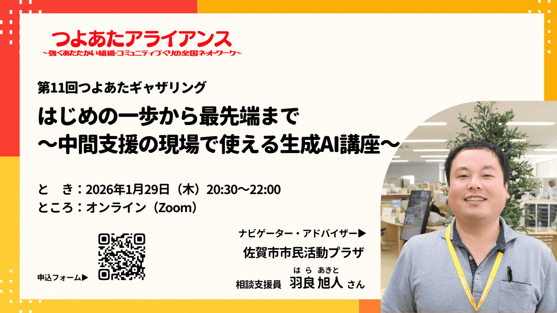 【1/15締切⚠️佐賀開催!】「よそ者」が仕掛けるまちづくりとは?佐賀県地域づくりネットワーク協議会(事務局:佐賀県CSO推進機構)です。今月22日、全国規模の「地域づくりコーディネーター研修会」がここ佐賀県で開催されます!今回のテーマは、地域活性化のキーワードとなる『「よそ者」が仕掛けるまちづくり』。地域外の人材(よそ者)が地域とどうつながり、変化を生み出していくのか? 先進的な実践者であるゲストをお招きし、そのノウハウや視点を学びます。【ゲスト講師】🗣️原田 佳南子 氏(瀬戸内ワークス株式会社 代表取締役)🗣️高橋 幸博 氏(株式会社ARCH 代表取締役)現地開催に加え、第1部はオンライン(Zoom)参加も可能です。申込締切が【1月15日(木)】と目前に迫っております!貴重な機会ですので、ぜひお早めにお申し込みください。✅開催概要📅日時:2026年1月22日(木)13:00~16:45📍会場:ホテルマリターレ創世佐賀(佐賀市)💻形式:現地 または オンライン(第1部のみ)💰参加費:現地3,000円/オンライン2,000円⚠️申込締切:2026年1月15日(木)👇詳細・お申し込みはこちらから📝https://min-nano.org/news/14877.html主催:地域づくり団体全国協議会(事務局:地域活性化センター)#佐賀 #地域づくり #まちづくり #地域おこし協力隊 #移住 #関係人口 #よそ者 #地域活性化 #佐賀県CSO推進機構 #佐賀県地域づくりネットワーク協議会 #研修会 ... もっと見る表示を減らす