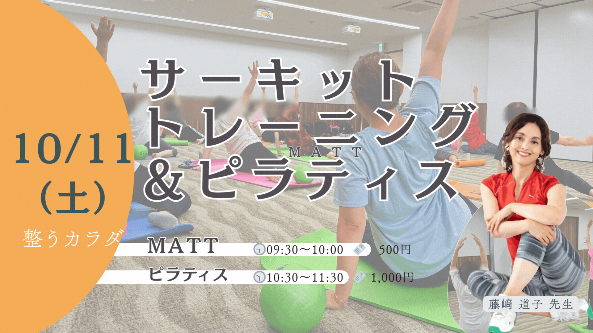 【開催告知】10/11(土)「サーキットトレーニング(MATT)&ピラティス~整うカラダ~」